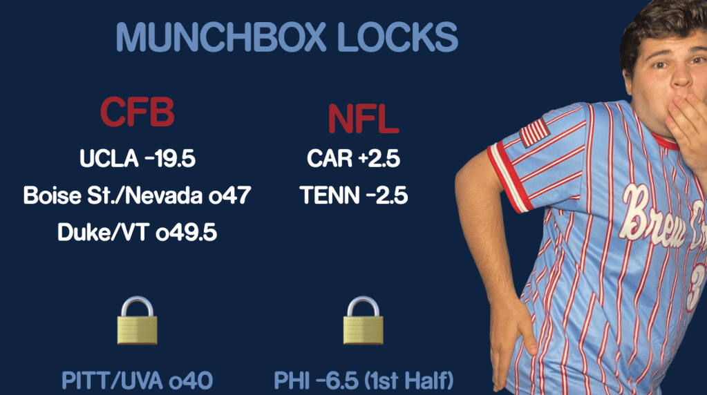 Munchie sucks at college betting, going a dismal 1-4, including yet another missed mortal lock. His pro picks, however, continue to thrive as he saved his weekend from being disastrous with a 3-0 Sunday.