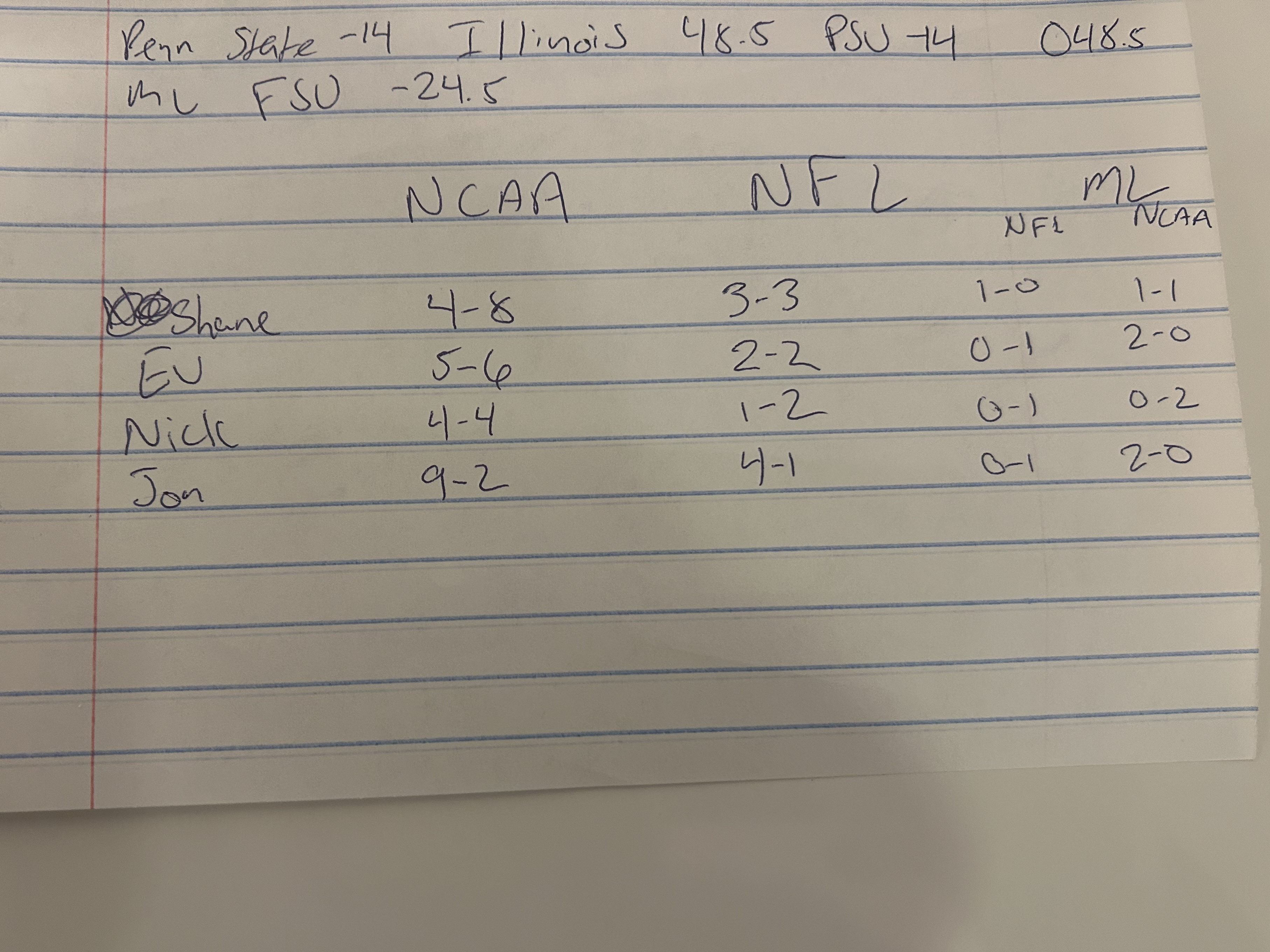 - Shane- Notre Dame -34.5, Giants -4, Danny Dimes o85 rushing yards
