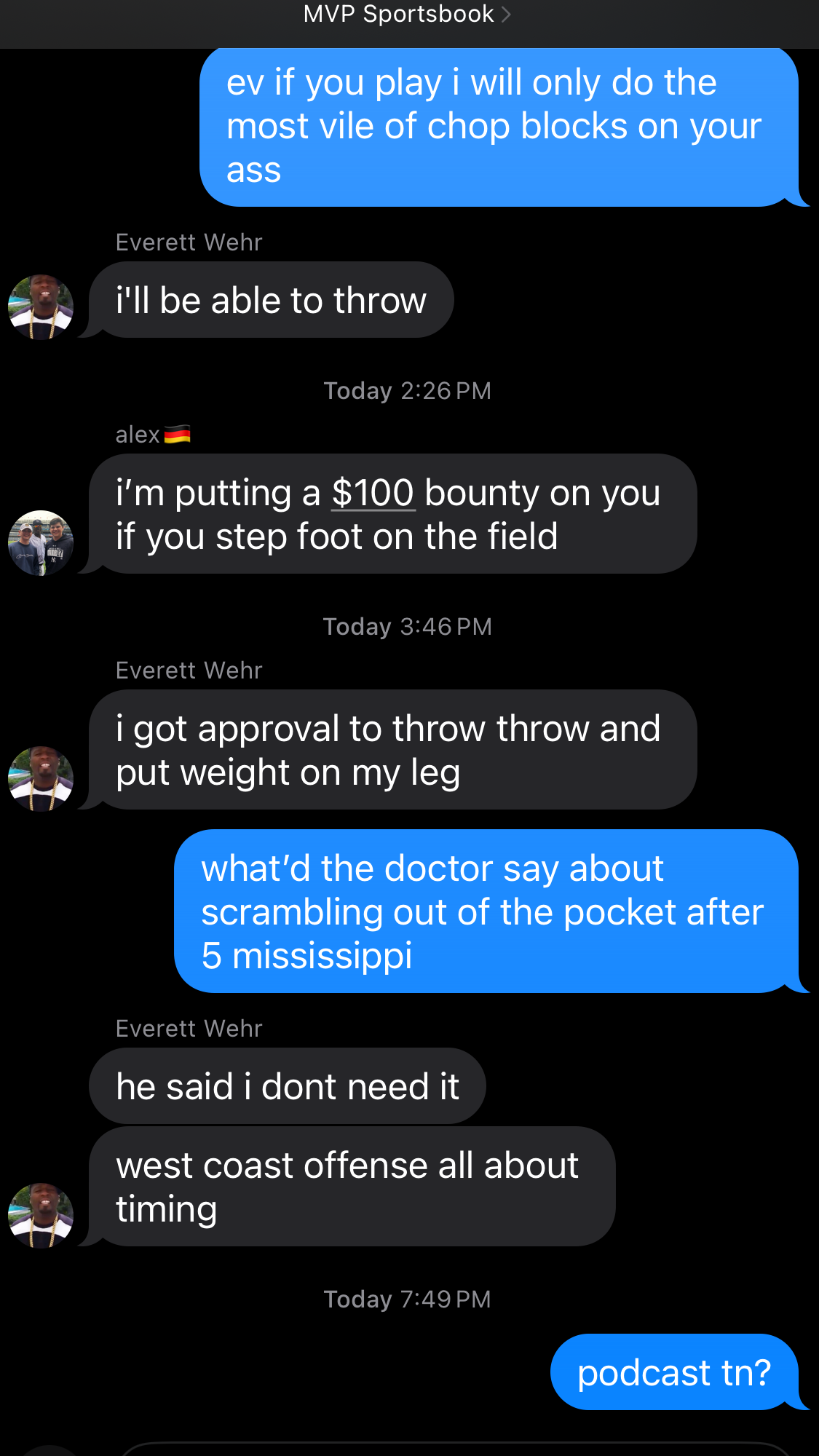 We didn’t record this week as the boys did a great job communicating on when to record. Dipshit with the broken leg also thinks he can pull a Greg Jennings from Madden 12 (see below image). The GM took a play straight out of the Sean Payton playbook offering a bounty to whoever will target this buffoon. He also simply didn’t text in the right plays at all. So, I’m going to keep the plays that he sent in and see how he does. Now, this has never happened so I get to make the rules; if they hit, they won’t count, and if they miss, they’re worth double. That’s the price you pay for being a dingus. You also deserve this because now we can’t get any Szechuan silly ribbit plays this week (which have been doing so superb, I’m proud of us).